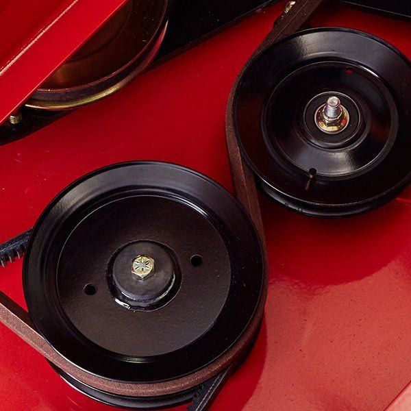 Self-adjusting belts ensure constant tension and consistent blade tip speed